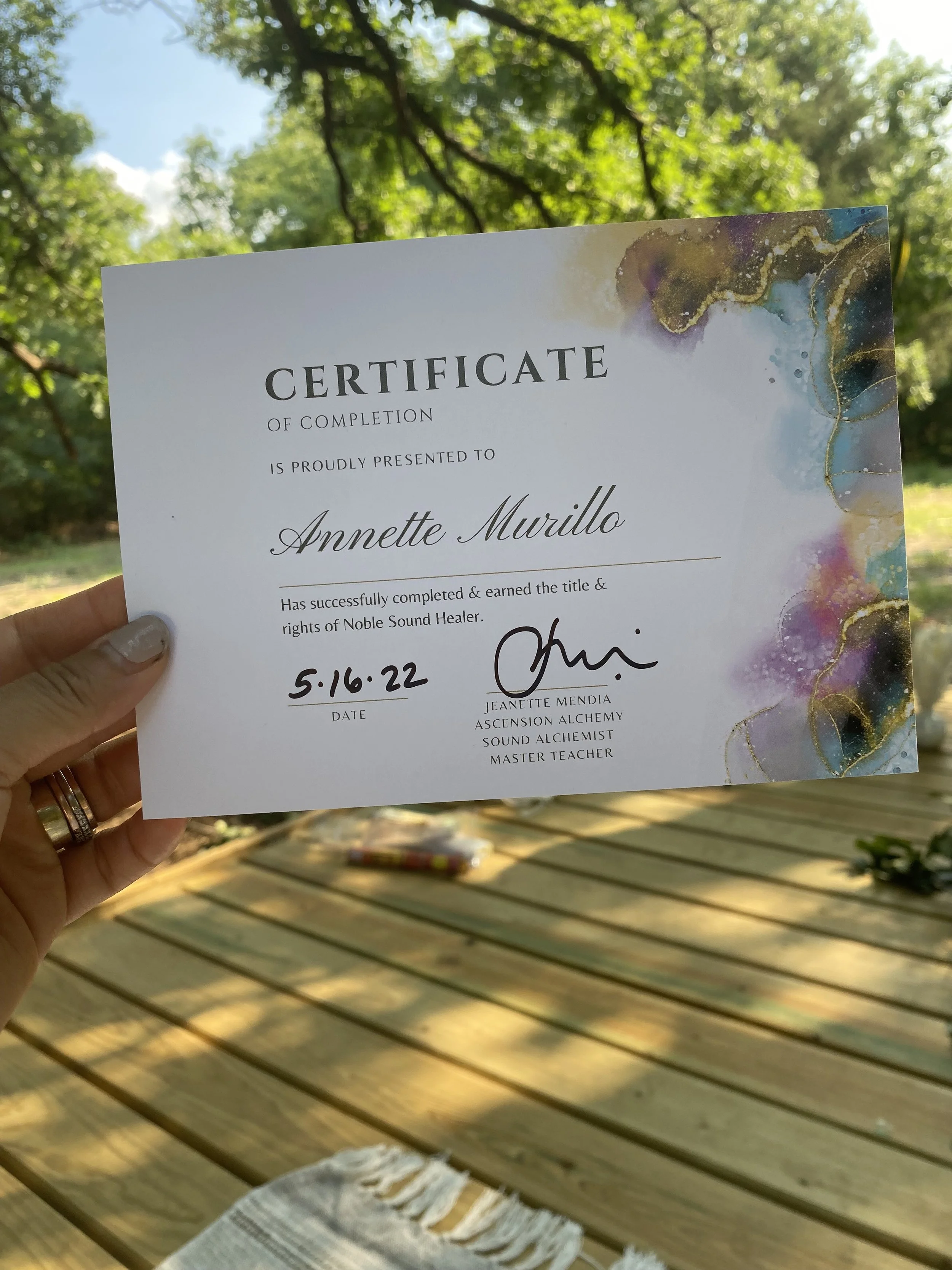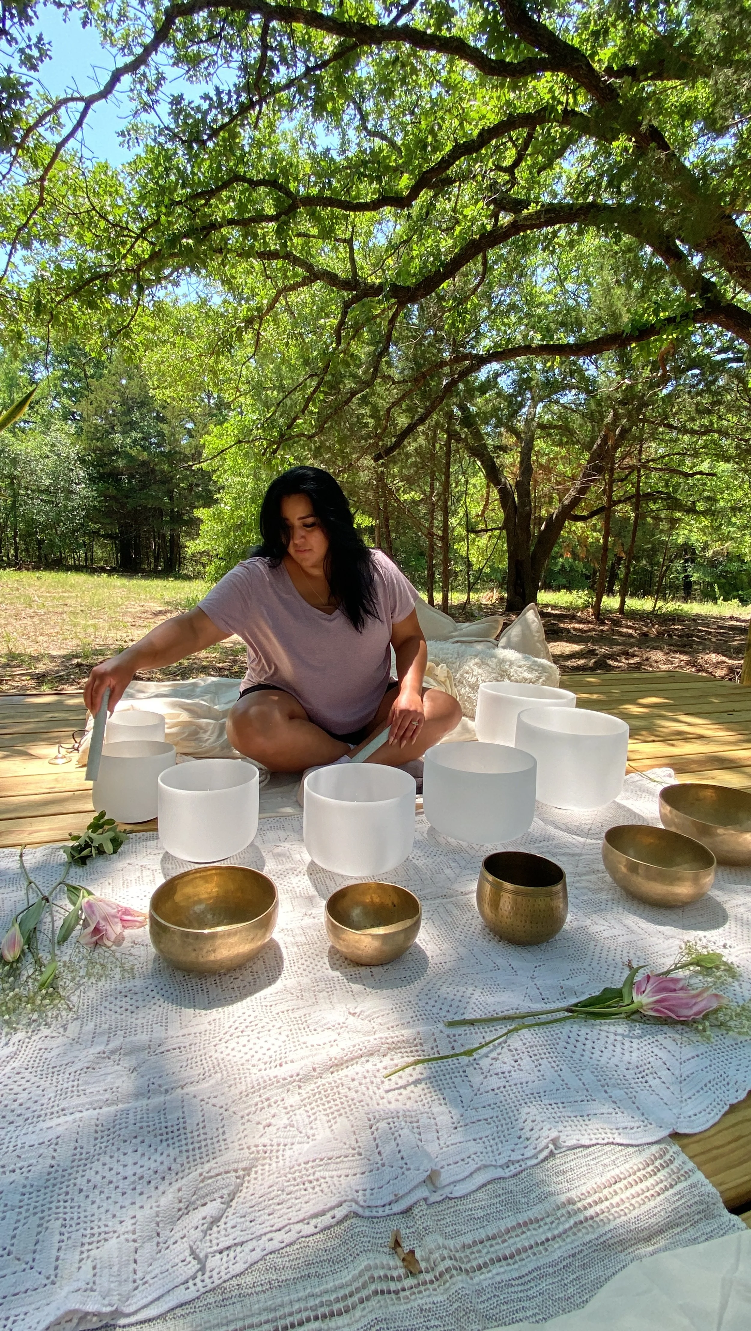 This intimate certification course was led by Jeanette Mendia of Ascension Alchemy at a beautiful family-owned land in Cumby, Texas (about 1.5 hours from Dallas). Students learned how to perform a relaxing, therapeutic sound bath by understanding the science behind sound healing.