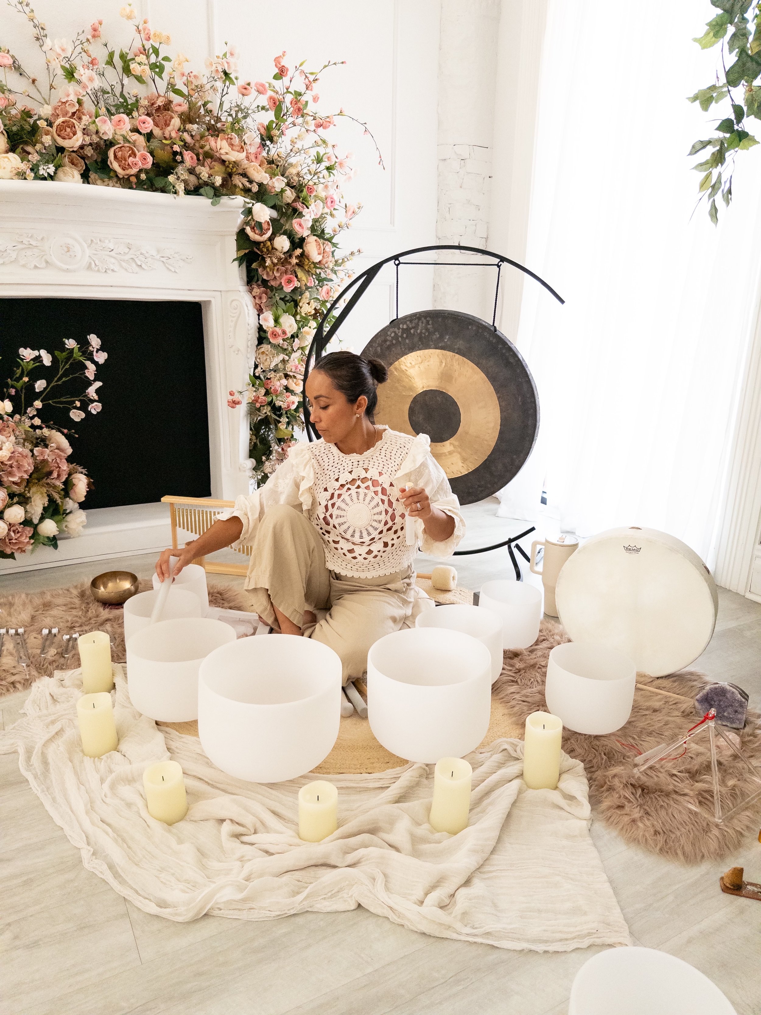 My journey in Sound Healing began late 2019 when my curiosity of sound frequencies enhancing and healing the mind, body and soul began. I joined a few sound bath experiences, but it wasn’t until 2021 where my heart was ripped open in a fully immersive Sound Bath Ceremony in Malibu, California (my home state). The chic, welcoming environment and the openness of the practitioner and the participants were so real and raw that I HAD to bring this practice to my community. It changed me in a deep way that I wanted to recreate that magical moment over and over again in my own way.